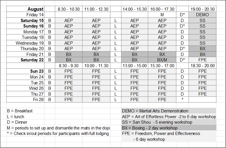 We’ll start this year’s Camp with a Martial Arts demonstration on Friday evening (19.00 – 20.30). It’s open to visitors and anyone interested. Of course you are also most welcome to invite your friends and family. And it’s for free!
